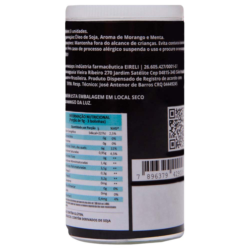 O conjunto de bolinhas funcionais Love Live da Satisfaction foi elaborado com: Óleo de soja, Aroma de morango e menta
