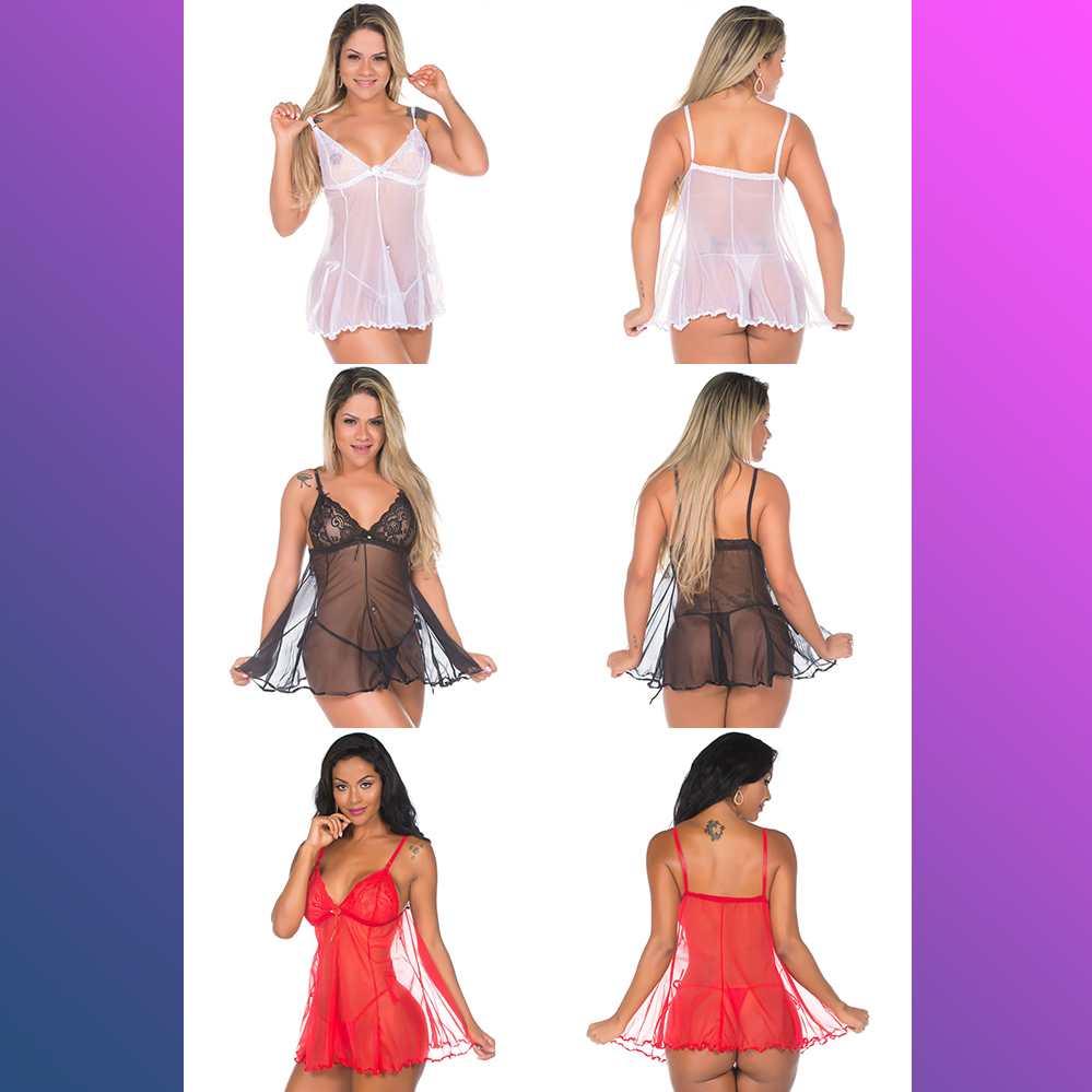 Contém: 1 Camisola sensual; 1 Fio Dental.