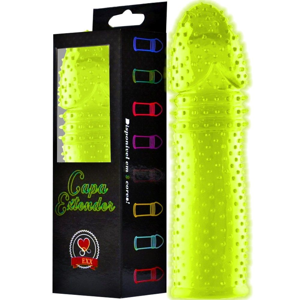 A Capa Extender, disponível em várias cores e transparente, possui saliências por todo o corpo, três anéis logo abaixo da glande para uma estimulação maior na hora da penetração, além de um anel prolongador na base.