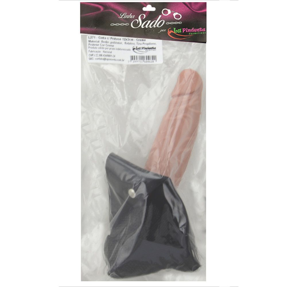 Cinta peniana com prótese realística de 12cm. Fabricada em material sintético semelhante à couro, revestimento interno aveludado para garantir conforto, fácil acomodação e uso correto do seu acessório.