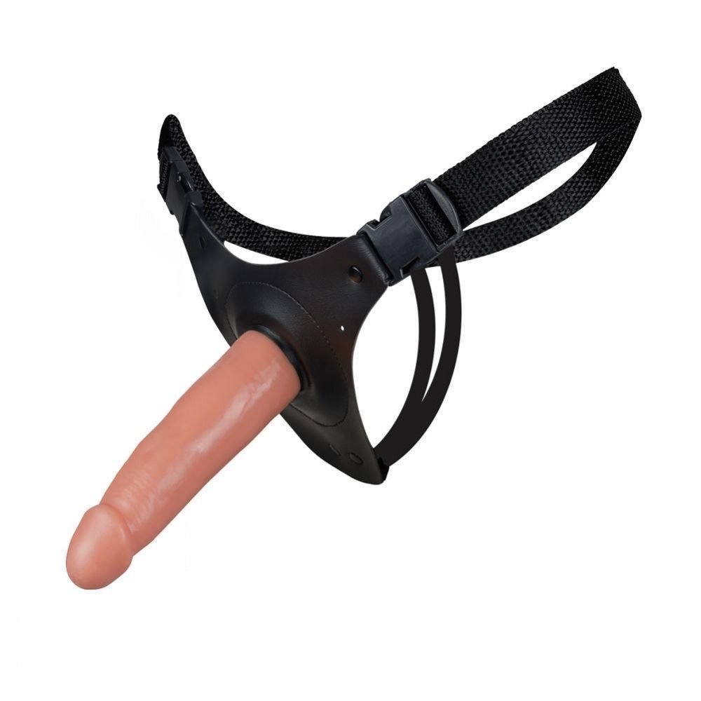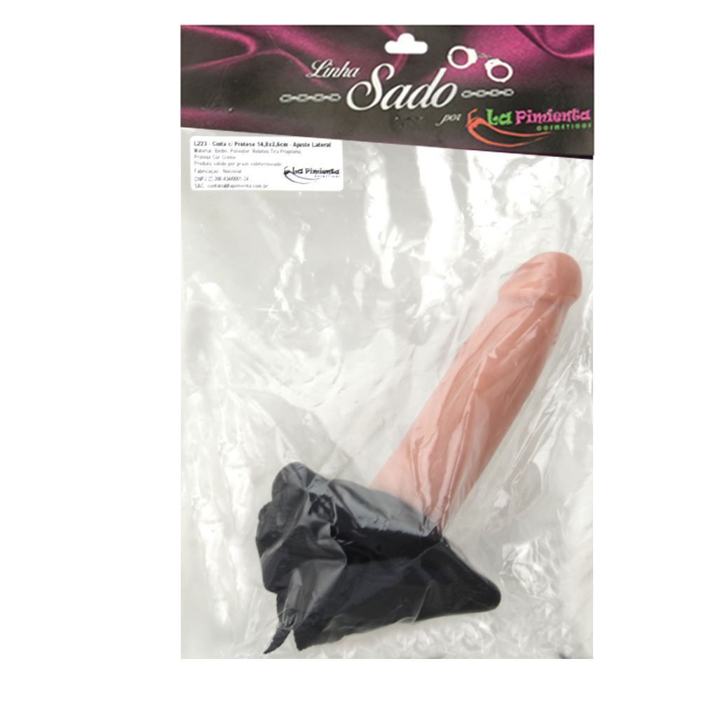 Cinta peniana feita de couro sintético com ajuste e pênis ultrarealístico de silicone, fixado à cinta, com glande definida e liso e textura de veias salientes. Pode ser utilizada com regulagem de tamanho do PP ao XGG.