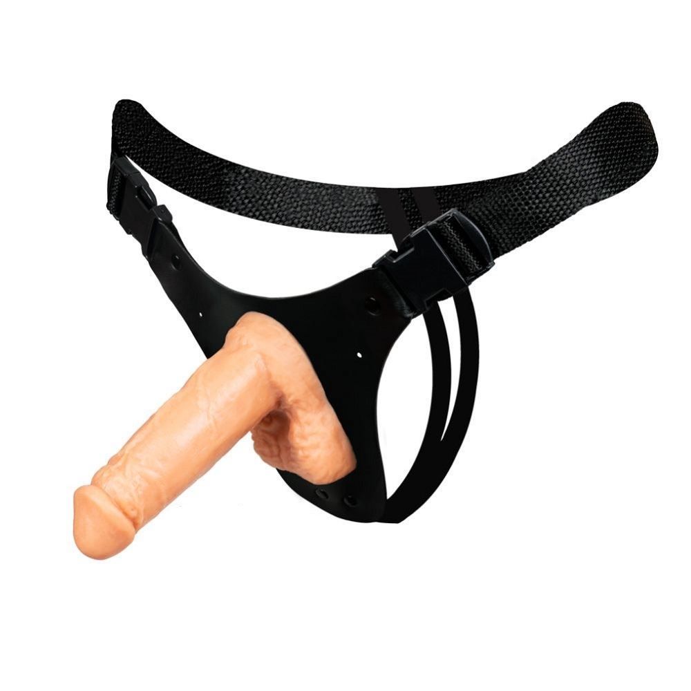 Cinta peniana com prótese realística de 12,5 x 3,2cm. Fabricada em material sintético semelhante à couro, revestimento interno aveludado para garantir conforto, fácil acomodação e uso correto do acessório.