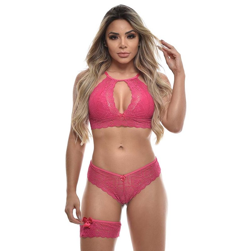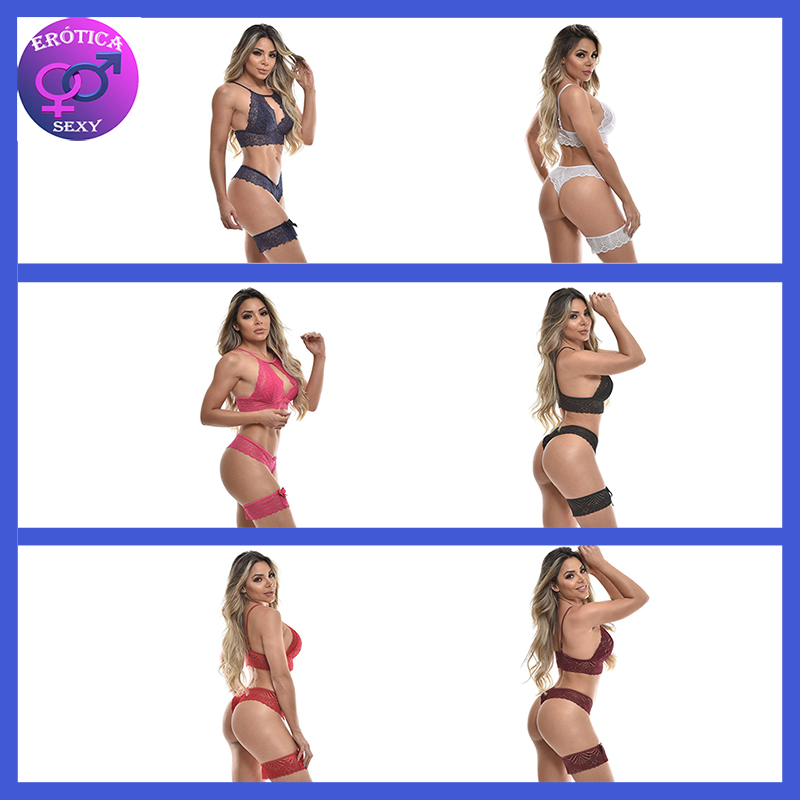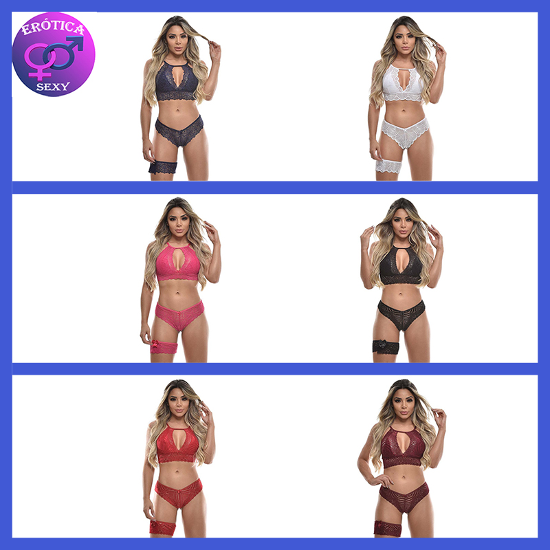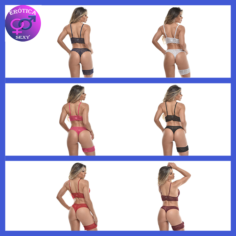 Contém: 1 Sutiã, 1 calcinha fio dental e um persex