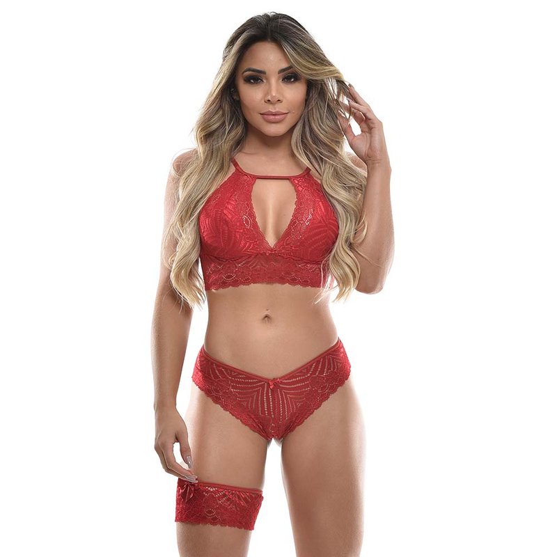 CONJUNTO CROPPED SENSUAL RENDADO COM PERSEX