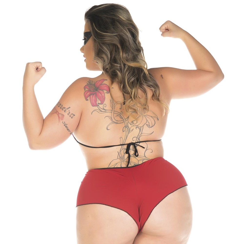 Kit Mini Fantasia Plus Size Sra Incrível Pimenta Sexy. Produzido em tecido sintético, ajusta facilmente do tamanho G ao GG.