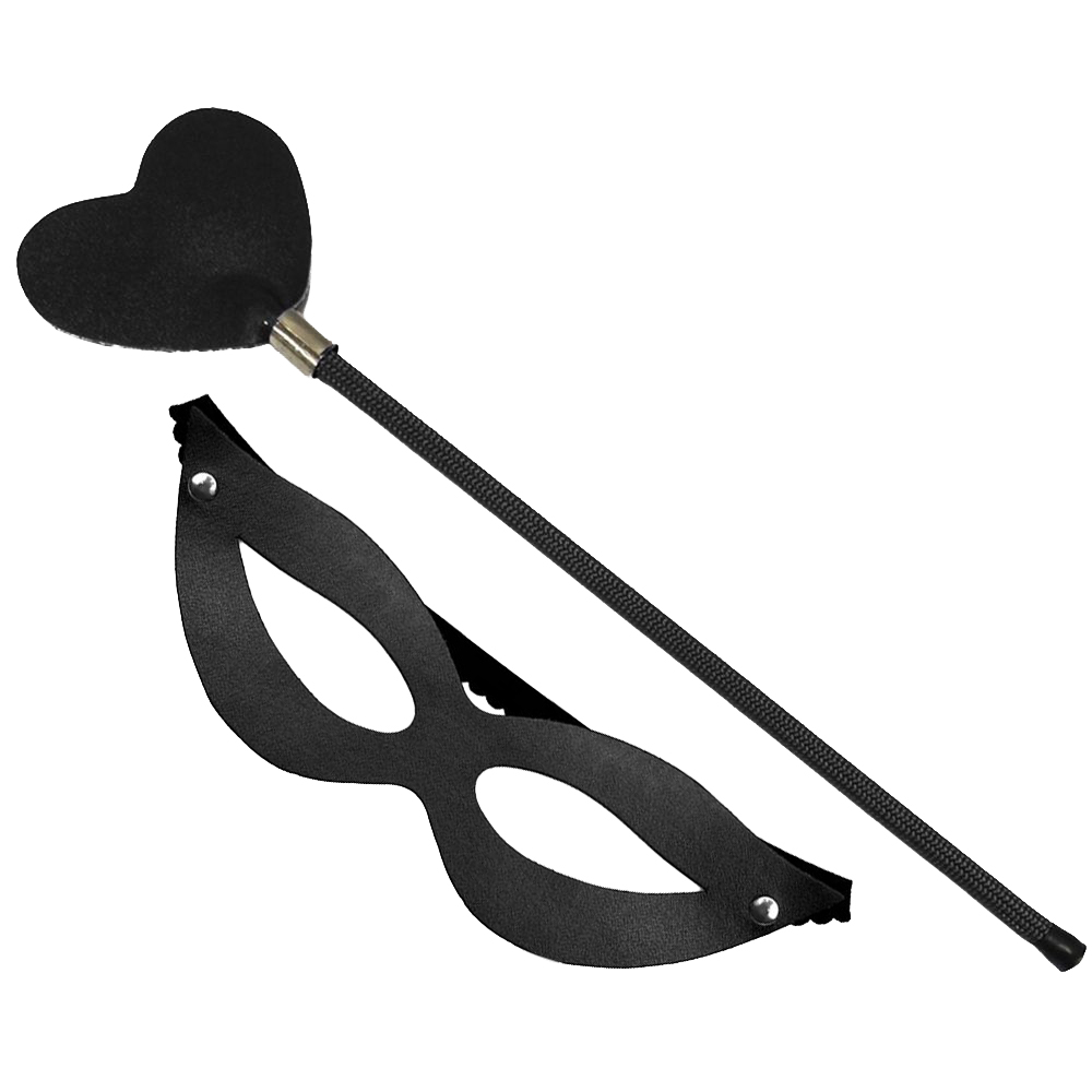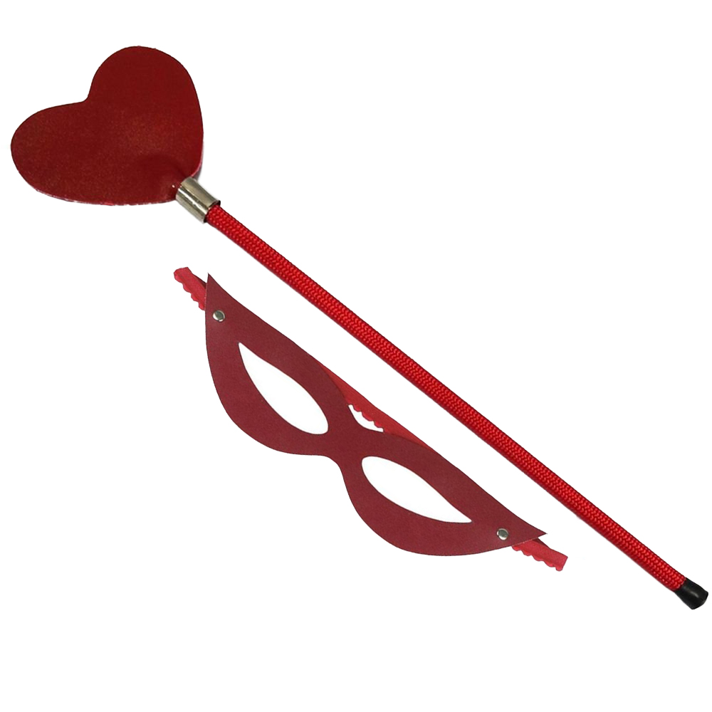 Chibata com base em plástico revestida de nylon liso e ponta formato coração de couro sintético.