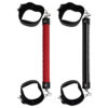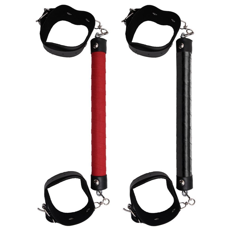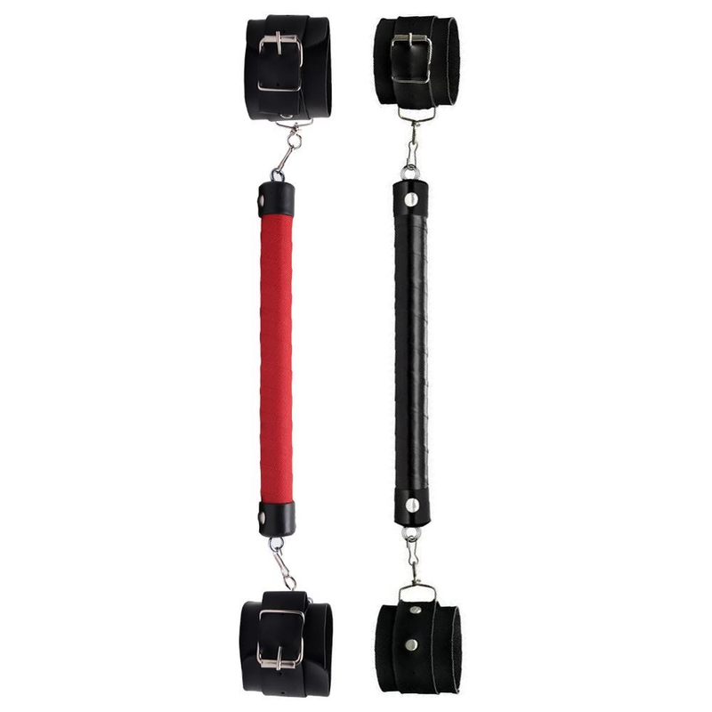 Separador de braços confeccionado artesanalmente em madeira com revestimento emborrachado na cor preta. Algemas fixas que acompanham a peça fabricadas em sintético semelhante à couro e revestimento interno aveludado. Ajustáveis e reguláveis de acordo com suas medidas de pulso para garantir conforto, fácil acomodação e uso correto do acessório. Detalhes de fivelas, fecho e travas em metal niquelado que garantem qualidade e durabilidade.