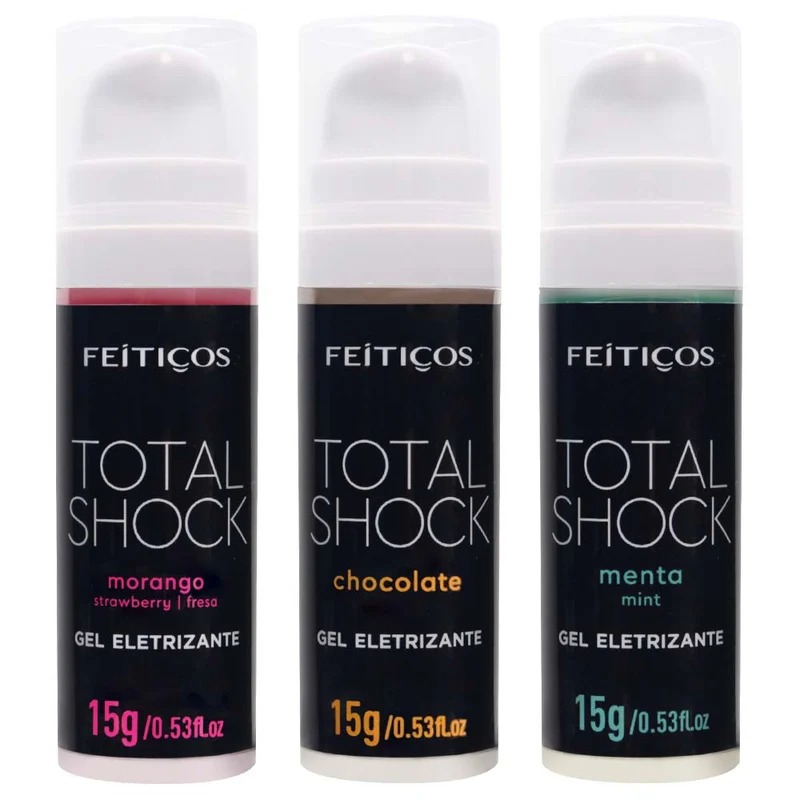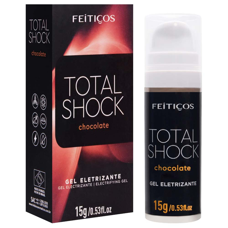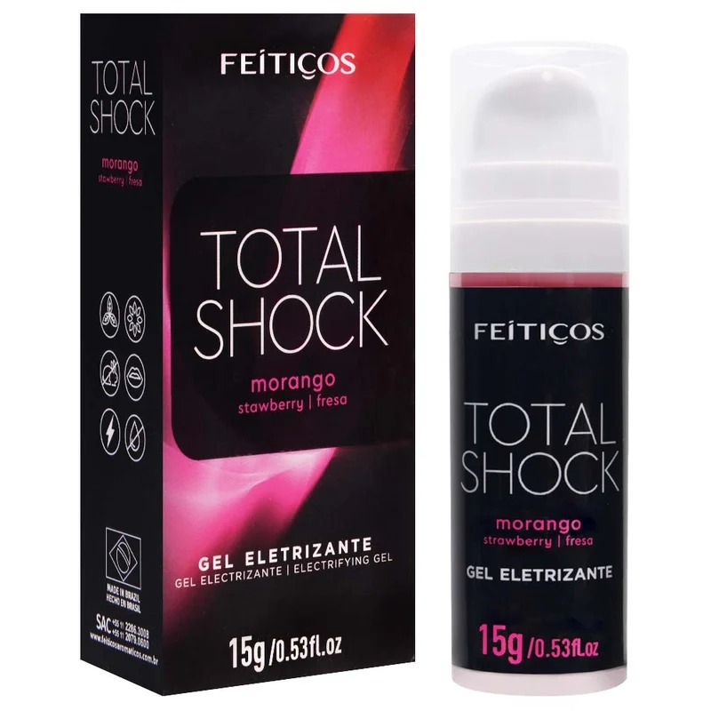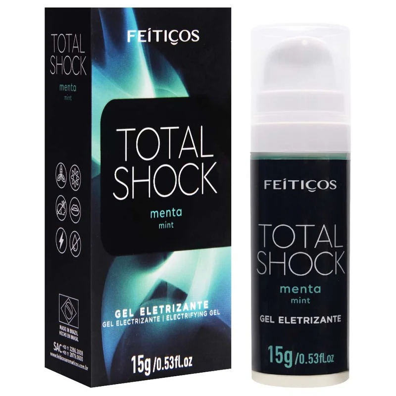 Total Shock é um gel excitante eletrizante unissex! Com sua exclusiva e moderna embalage, agora com frasco “airless”, utilize até a última gota do produto. Devido a sua formulação única, Total Shock provoca pulsação e formigamento, excitando e eletrizando seus momentos de prazer. Também conhecido como “vibrador líquido”.
